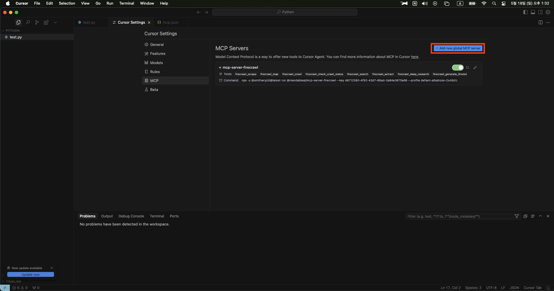 FireCrawl를 Cursor에 적용해서 크롤링 쉽게하기(FireCrawl=MCP Server, Cursor=MCP Client)